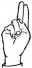 На ћирилици написано МИНА СЕКУЛОВ састоји се из 11 слова [?]. Исписано ћириличном једноручном азбуком за глувонеме:
